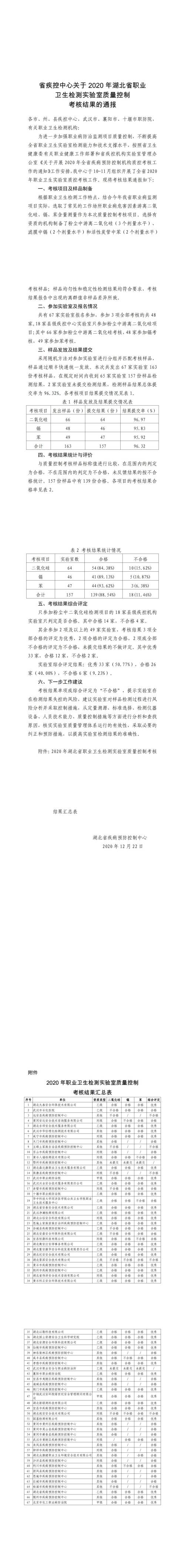 關于湖北公信安全科技有限公司參加2020年度湖北省職業衛生檢測實驗室質量控制考核結果的公告